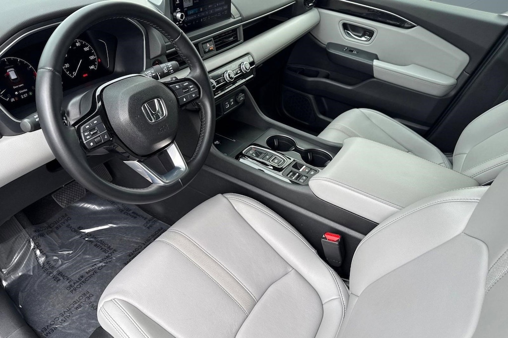 Inside, the EX-L trim offers a premium cabin with leather-trimmed seating and thoughtful design throughout. The spacious interior provides ample room for passengers in all three rows, ensuring everyone travels comfortably. The intuitive infotainment system features a touchscreen display with smartphone integration, allowing you to stay connected, access navigation, and enjoy your favorite music with ease.
