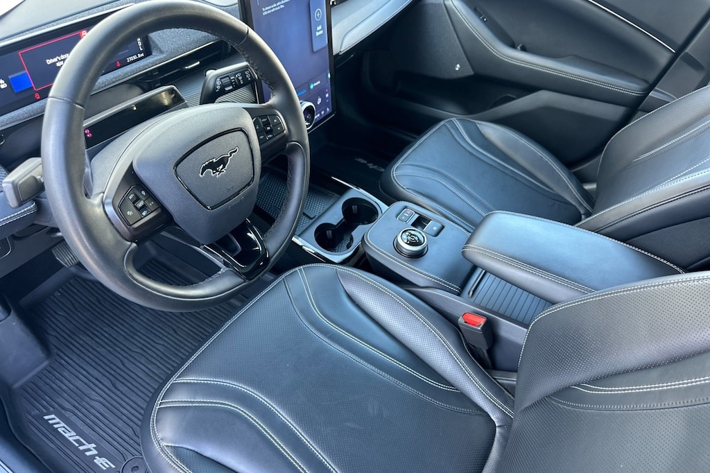 The Mach-E Premium is not just about performance---it's also about comfort and sophistication. Step inside, and you're welcomed into a spacious, modern cabin with high-quality materials and a sleek, futuristic design. Supportive seating provides excellent comfort for both driver and passengers, while the versatile cargo space makes it practical for everything from errands to road trips. With its clean, minimalist layout, the interior emphasizes both function and style.