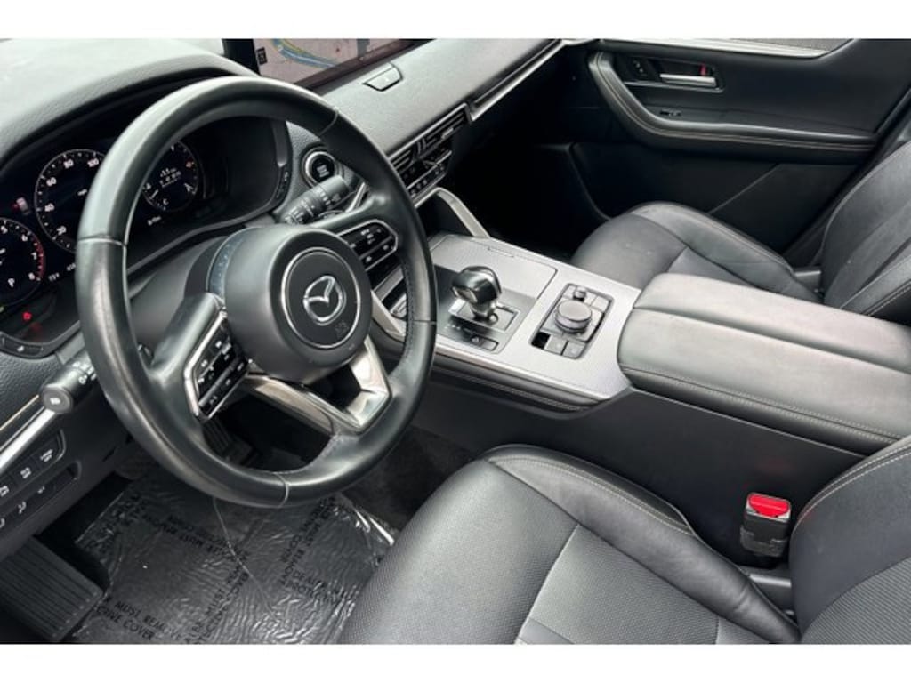 Scores 28 Highway MPG and 23 City MPG! This Mazda CX-90 boasts a Intercooled Turbo Gas/Electric I-6 3.3 L/200 engine powering this Automatic transmission. JET BLACK MICA, BLACK, LEATHER SEAT TRIM, Trunk/Hatch Auto-Latch.